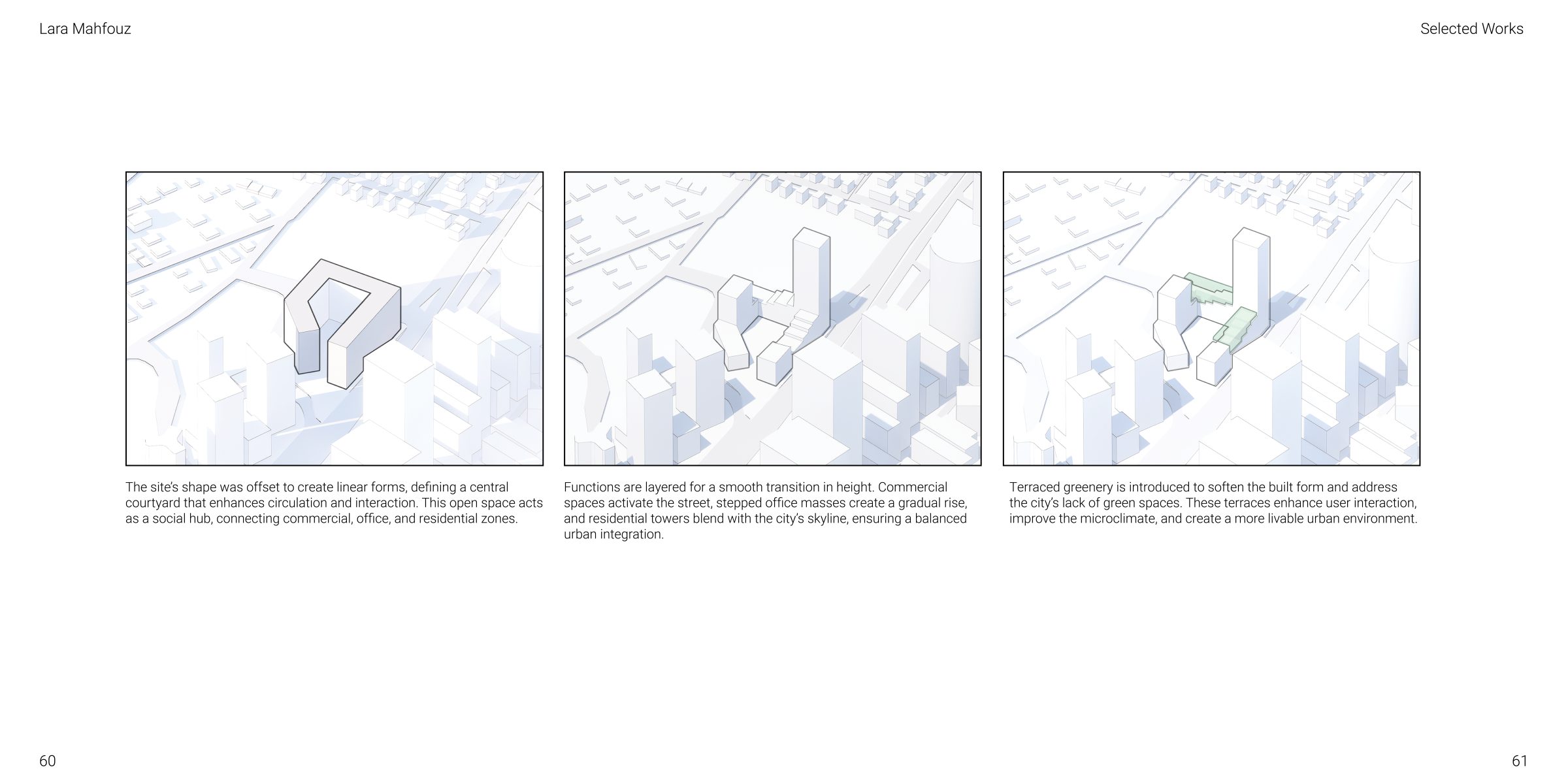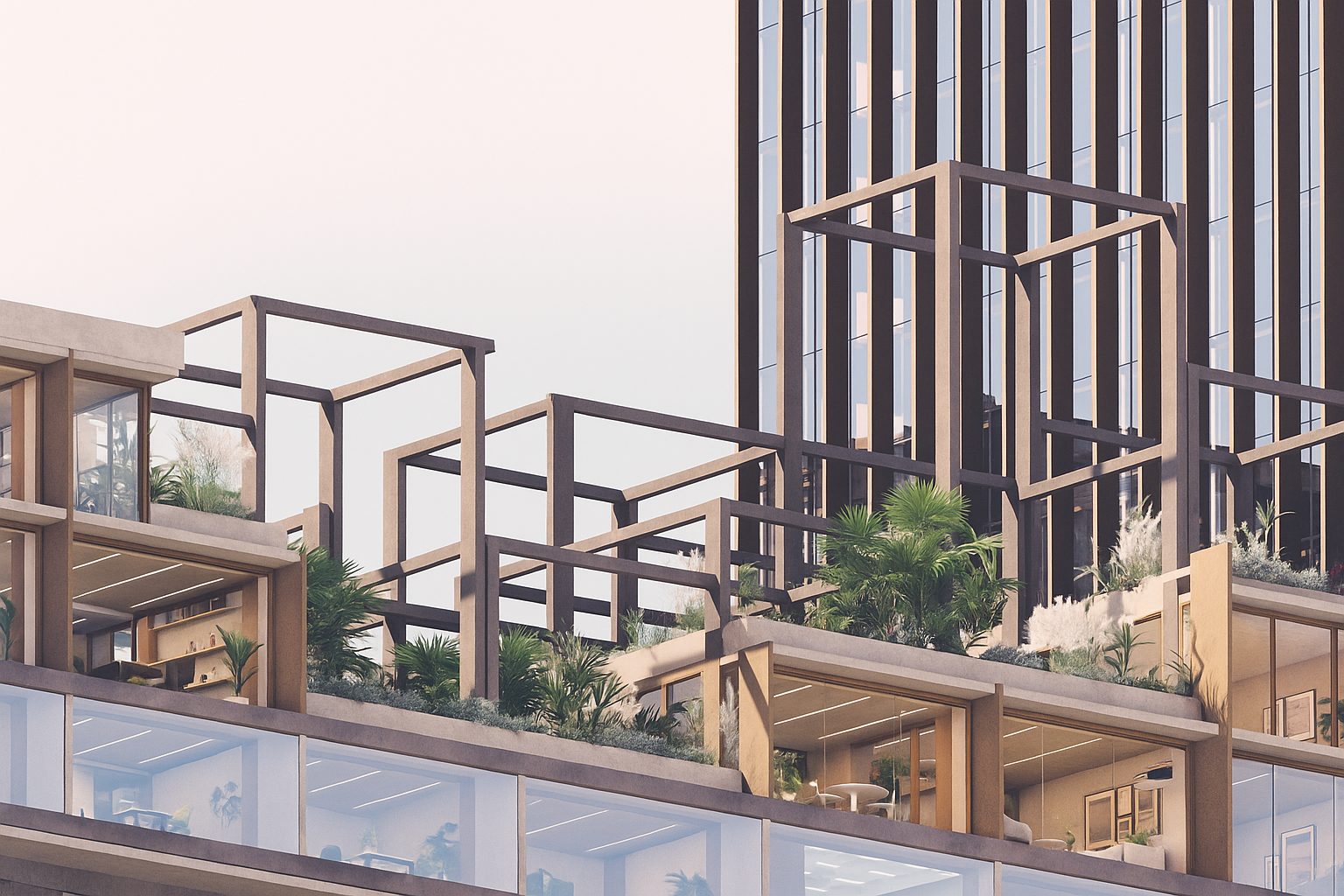 This mixed-use development responds to the area’s contrasting urban fabric, where towering skyscrapers meet lowrise residential neighborhoods. The project’s design mediates this sharp transition by introducing a gradual height integration, ensuring a seamless relationship between the existing cityscape and the new development.