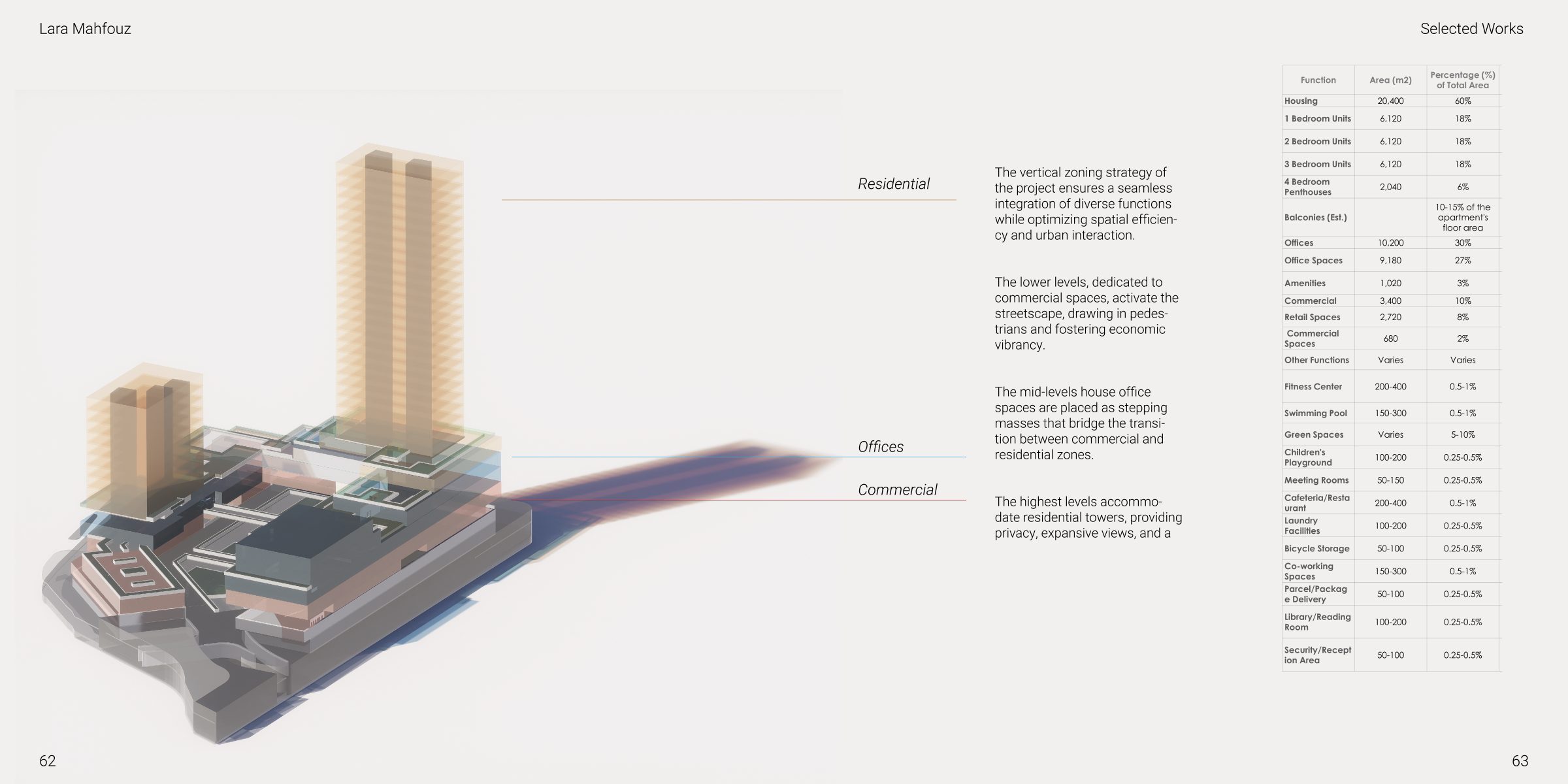 Positioned along Büyükdere Caddesi , the project capitalizes on high-density urban opportunities by activating commercial spaces at the street level, encouraging foot traffic and urban engagement. The development promotes a luxurious yet community-centered environment, balancing residential, office, and commercial functions while addressing Istanbul’s lack of green spaces through integrated terraces and