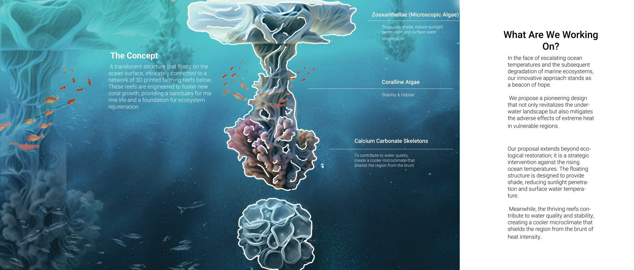 conservation. Beyond functionality, the project aims to raise awareness of ocean degradation and propose climatic interventions to mitigate rising sea temperatures.